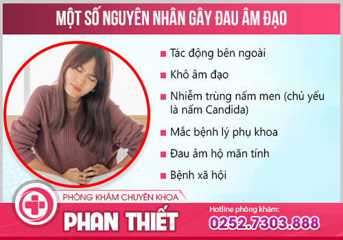 Đau âm đạo do mắc các bệnh xã hội: Một số nhóm bệnh xã hội thường gặp có thể gây biến đổi đường sinh dục và làm đau âm đạo: lậu, giang mai và đặc biệt là sùi mào gà. Đi kèm với các triệu chứng phổ biến như xuất hiện vết lở loét, mụn, tăng dịch tiết và khí hư, có mùi hôi khó chịu,…